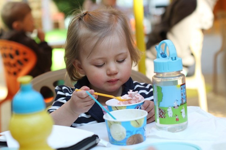 Ja! Vi är lediga idag. Efter en rolig första maj igår kände vi för en utfärd. Tillsammans med ett par mammor och några barn tog vi oss på glassutfärd. Gott!