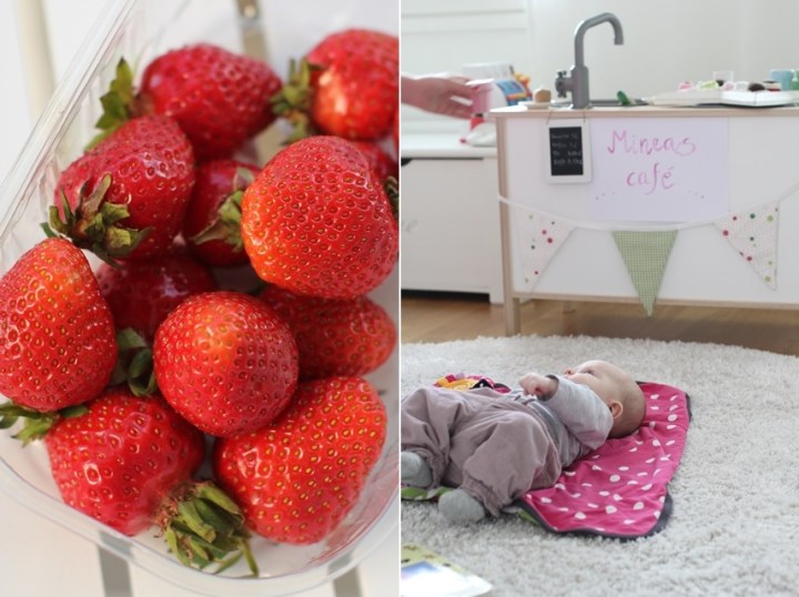 Igår var det mycket gott med de första finska jordgubbarna och idag var det härligt att ha denna lilla tjej med mamma på besök. Ljuspunkter!
