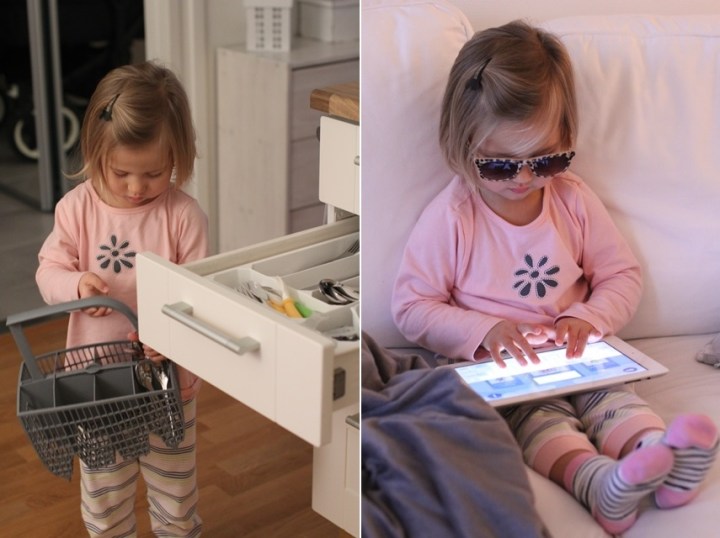 Och flickans fantasi flödar verkligen och hon är så fantastiskt rolig att lyssna på. Här var hon ju en lillmommo först ”Kan du hämta mina glasögon så att jag ser något?” och sedan förvandlades hon till mig. ”Hallå, jag är inloggad här men jag kan inte ringa dig för det finns inget SIM-kort i min telefon.”
