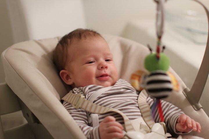 Det har nog totalt undgått mig att en tvåmånaders lejonunge kan sitta i 40 (!) minuter i sin stol och ha monolog (dialog?) med sitt bi. Idag hände i alla fall just det med vår tvåmånaders lejonunge. Det kan man kalla uthållighet.