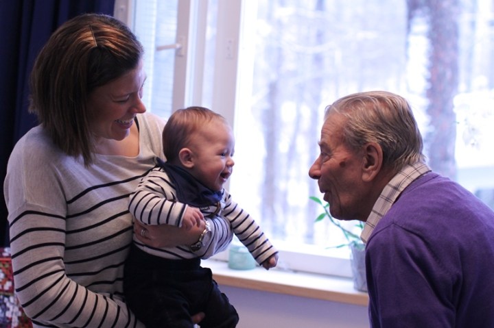 Vi började hos mofa. Här har vi verkligen en man som älskar barn. Så det var ramsor, sånger och dans med barnen. Mitt i glädjen spelade det faktiskt mindre roll att han frågade fyrtio gånger vad den lilla pojken kan tänkas heta då och femton gånger om han redan har skidat något.