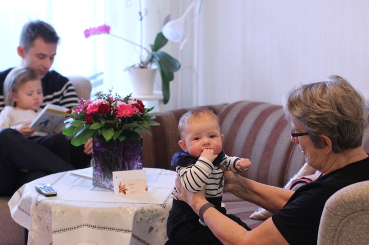 Och hos mommo fortsatte vi. Också här var glädjen stor när de små barnbarnsbarnen var på besök. Vi hann med både lunch och glasskaka. Hon hade ju haft födelsedag i veckan så det skulle givetvis firas lite. Härlig och framför allt viktig förmiddag.