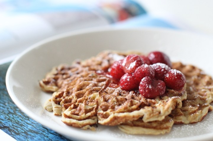 Loppan och jag kände för ett lite lyxigare mellanmål. Och så kom jag på att jag här om dagen sett bananvåfflor i instagramflödet. Tidigare gjorde vi bananplättar (1 banan, 2 ägg, blanda, stek) rätt ofta. Nu har vi haft paus ett tag. Så nu passade det riktigt fint att introducera bananvåfflor som något helt nytt för den unga damen.