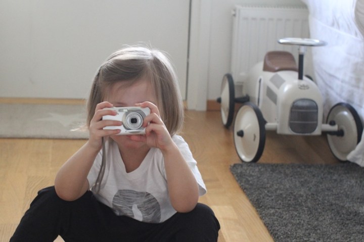 Och innan läggdags sitter hon där och trallar ”Selfie, selfie, selfiiie”. Och jag är så road bara. Minns ni när hon fick sin första kamera? Klick.