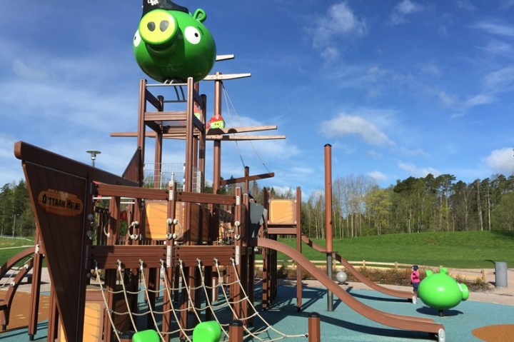 Vi började dagen med en belöningsutfärd. Detta Mineas belöningssystem gick ut på att få tio klistermärken för att ha gjort extrafina saker (nå i verkligheten saker och situationer som brukar vara svåra). Alla tio klistermärekn fick hon av helt olika orsaker. Efter tio märken var det Angry Birds parken som gällde, det visste hon. Och idag var det dags för belöningen.