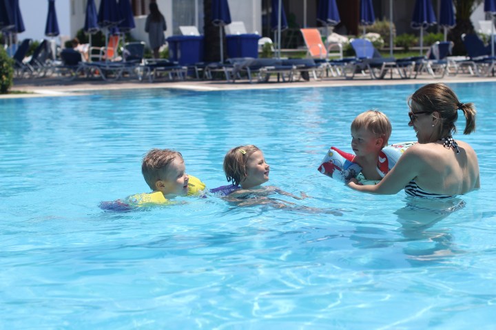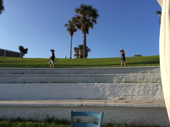 Nu har vi pratat igenom en veckas händelser på några timmar vid poolkanten, ätit middag tillsammans och sagt godnatt!