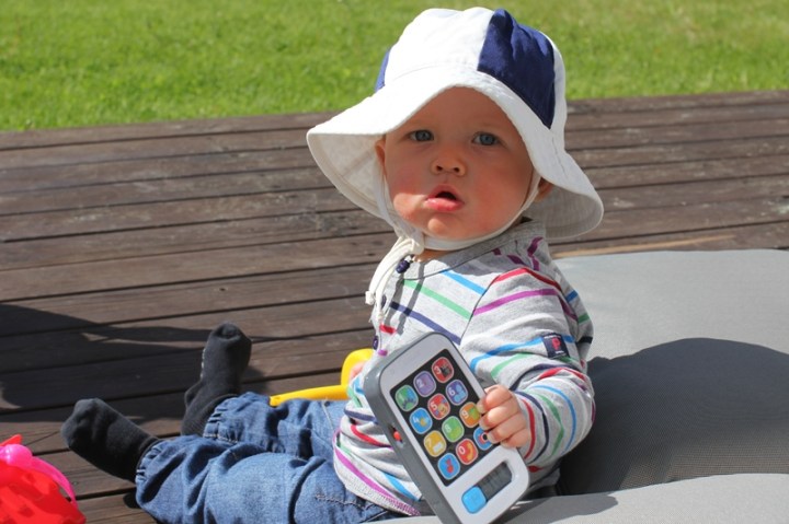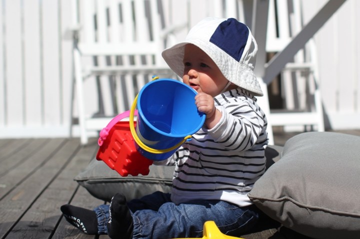 Han är ändå som nöjdast när storasyster är bredvid och visar honom roliga saker.