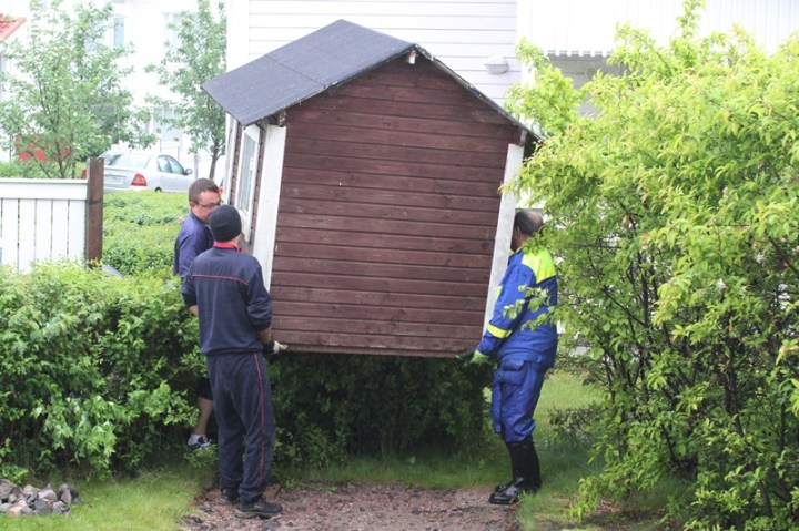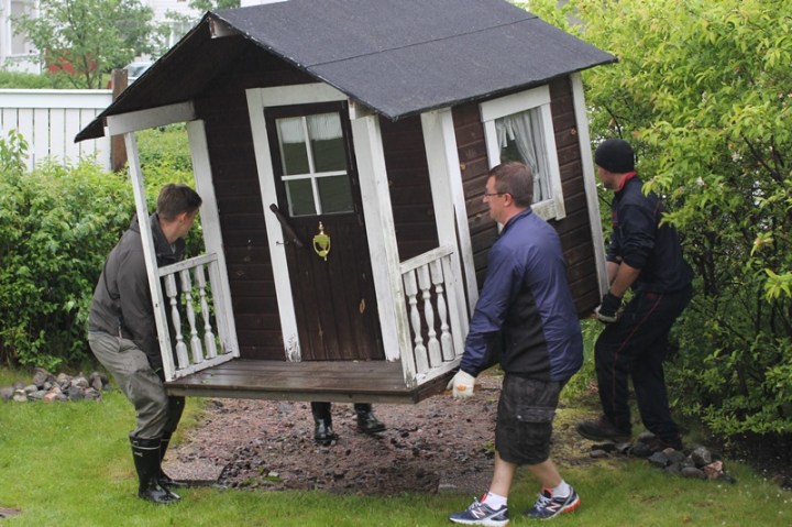 Ikväll hjälptes fyra män åt och fick den från plats A till plats B (vår gård).