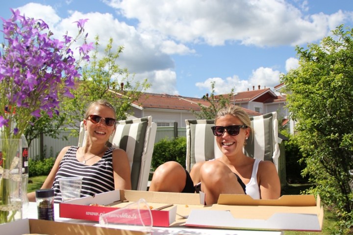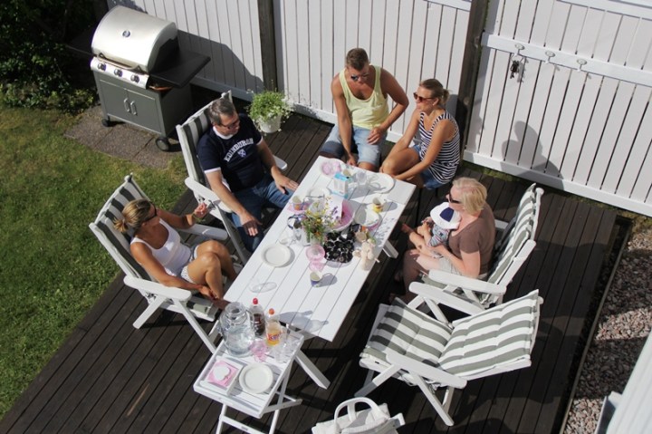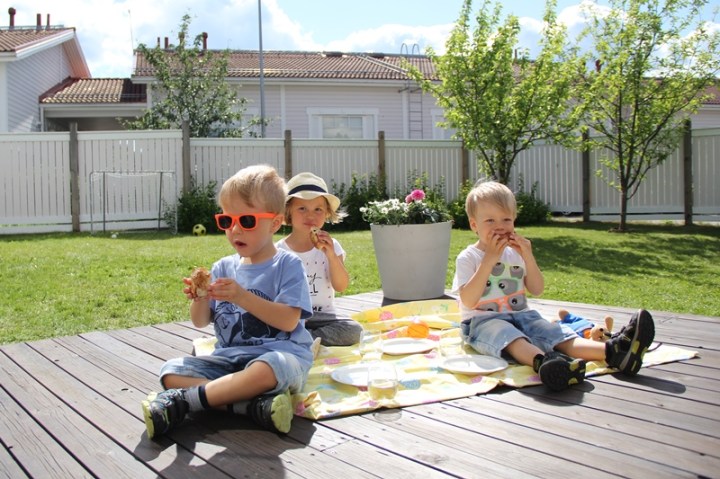Dagen efter festen är fin på många sätt. Plocka undan. Njuta av minnen från gårdagen. Äta skräpmat. Sola. Läsa. Få hem barnen från övernattningen. Få pappa och mammu på besök med systers barn. Att ha hela yra skaran samlad igen.