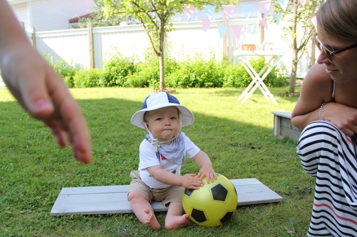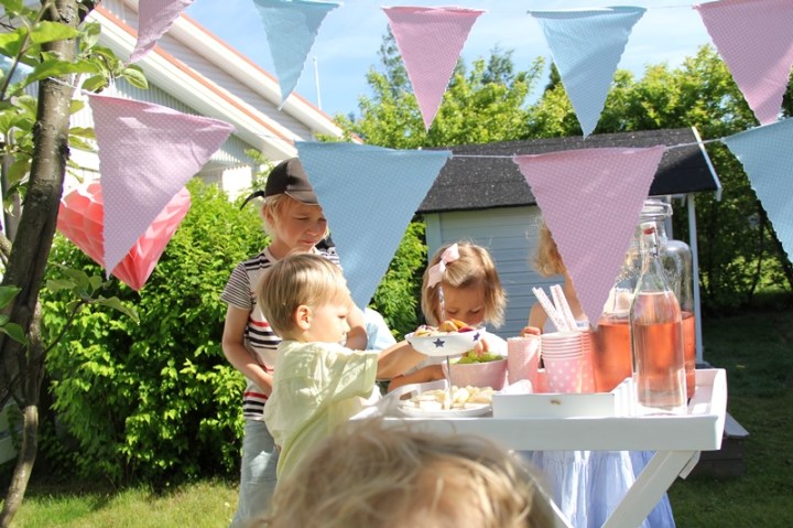 Hurra! Fest för att inviga lekstugan. Det blev barnversionen av förra veckans garden party i förmiddags. Och jag kan säga att om det var trängsel kring bålen förra veckan så var det verkligen det idag också.