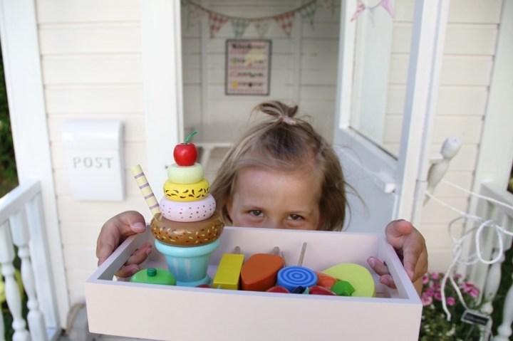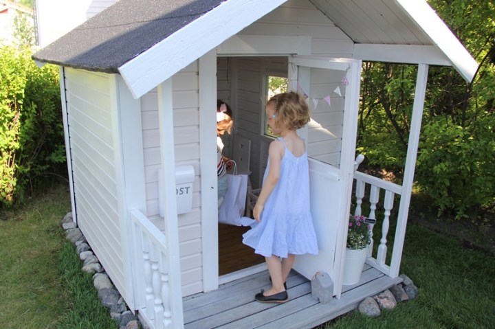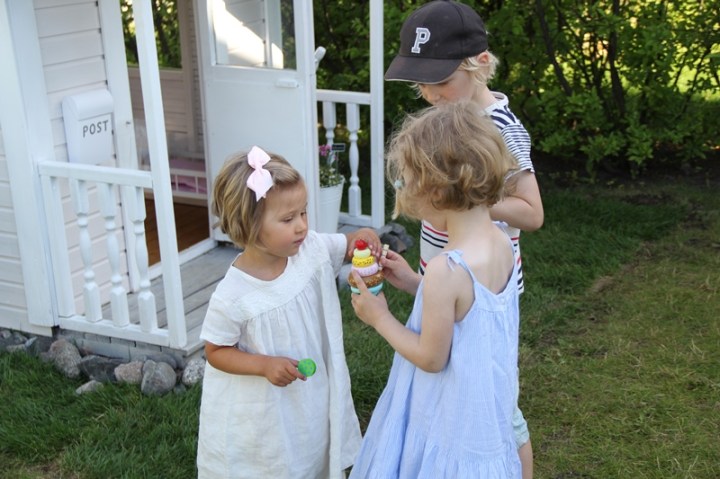 Lekarna har varit många i stugan idag. Till kvällen envisades flickan ännu att leka restaurang med mig. Där bjöds jag på alla världens läckerheter som barnen fick i inflyttningsgåva av gästerna idag. Tack!