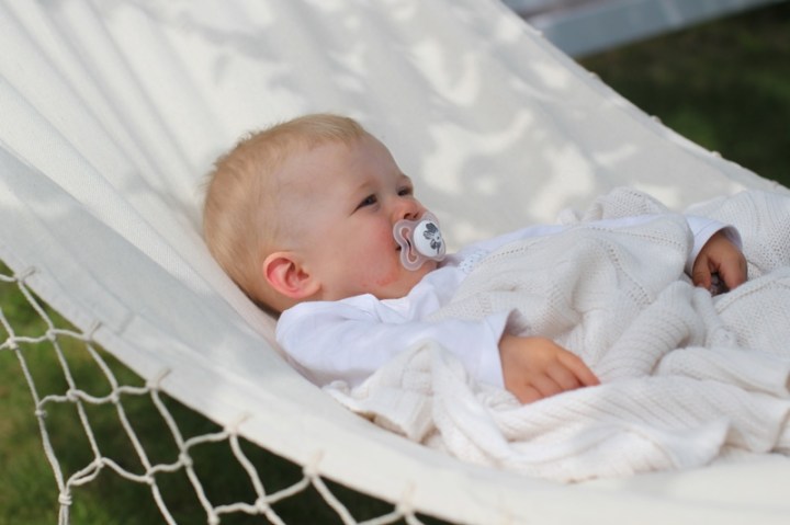 Så hängde jag upp hängmattan under barnens vila, a.k.a siestan. Tog en bild och skulle just lägga mig tillrätta när PANG, mitt hjärta stannade för en sekund. Det var en så hård smäll från jordvärmebygget. Jag var givetvis inte den enda som blev skitskraj. Leo grät och kunde inte somna om. Så då fick han ligga i hängmattan istället.
