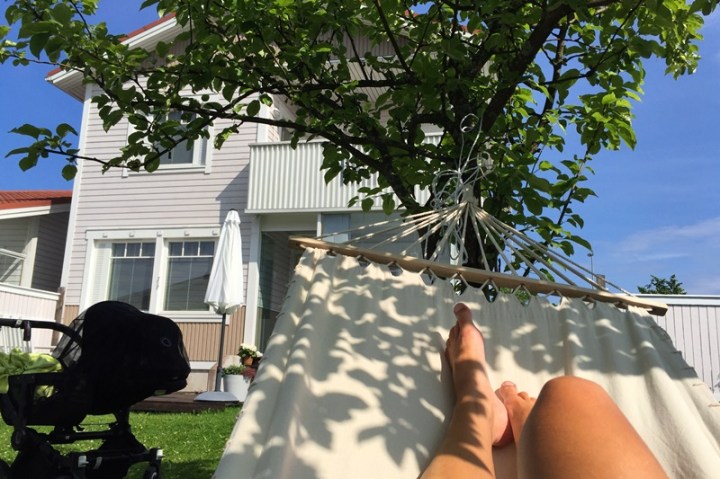 Och sedan, flera timmar efter första försöket fick jag äntligen en kvart i hängmattan när Minea lekte i lekstugan och Leo tog igen sig i vagnen. Och halleluja vad skönt.
