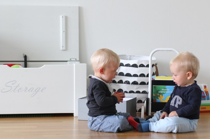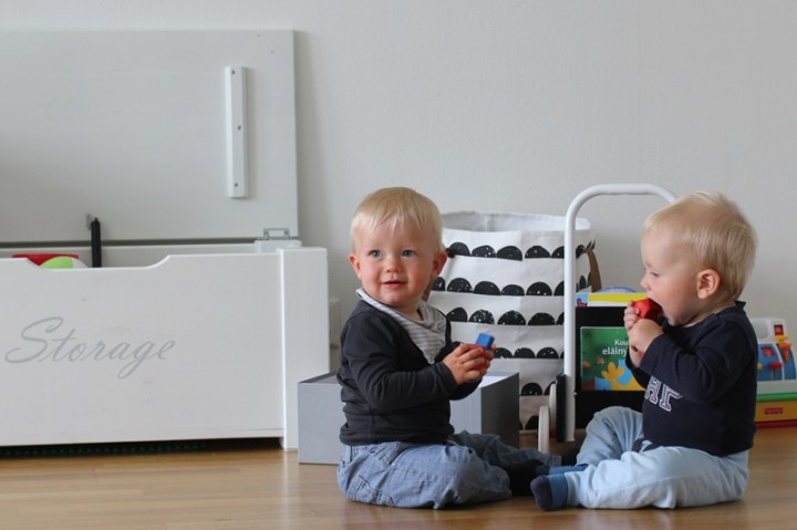 Efter en lång paus fick Walter och Leo till en träff. Till vår stora förvåning såg de precis lika ut. Som tvillingar. Två lintottar med några veckors åldersskillnad. Och så underbara tillsammans. I ett huj hade de ut allt ur leksakslådan och så körde de omkring med gåkärran. Och mammorna frossade i sushi. Mycket bra upplägg.