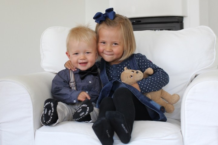 Jag fick för mig att jag ville föreviga barnen på samma sätt som innan Mineas 3-års kalas i mars. Se här. En del har ju hänt på ett halvt år. Förutom att Leo hade på sig exakt samma byxor idag som då. Haha.