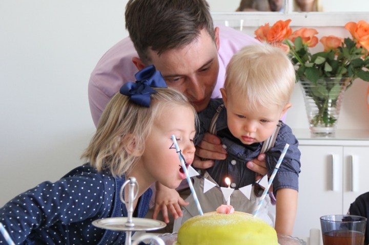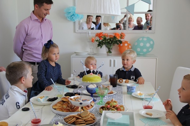 Leo fick hjälp på traven med att blåsa ut ljuset på sin prinstårta.