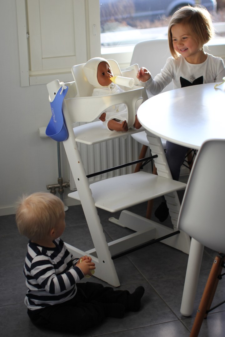 Att ligga kvar i sängen lite längre och lyssna när Pekka och Minea börjar skramla nere i köket. Då vet man att det nalkas god frukost. Efter frukosten tog vi en lugn förmiddag hemma. En massa fix för mig och en fin ro för Minea att leka längre lekar. Väldigt lycklig liten mamma med sin Lilly docka. Och Leo får vara med på ett hörn. Han får vara storebror som dricker ur Lillys pipmugg.