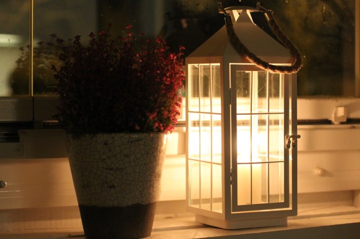 Efter BUU-dagen hade vi gäster. Inte vilka gäster som helst, utan den familj som bodde i vårt hus tidigare. Det var härligt att ha dem här igen. Som om de hämtar husets äkta känsla, som om de hör hemma här. Tillsammans njöt vi av årets första glögg och pepparkakor med brieost. Och vi fick en så vacker lykta av dem. Den fick direkt paradplats på farstukvisten.