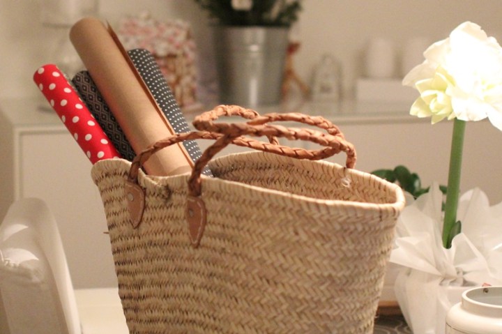 Till kvällen packade jag papper, band och annat paketeringsmaterial i korgen och bar ner till matsalen. Där hade Pekka och jag sedan tomteverkstad hela kvällen lång.