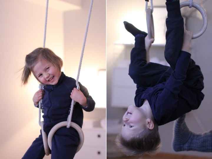 Hemma hos systeri hänger gymnastikringarna mitt i vardagsrummet. Och om de används? Definitivt. Är så inspirerad att jag asap skulle vilja få upp våra ringar som nu vintertid bara ligger i skåpet när vi inte har dem med oss ut om dagarna. Men fortfarande har vi inte hittat rätta stället här inne. Men vi kommer nog att hitta det till slut.