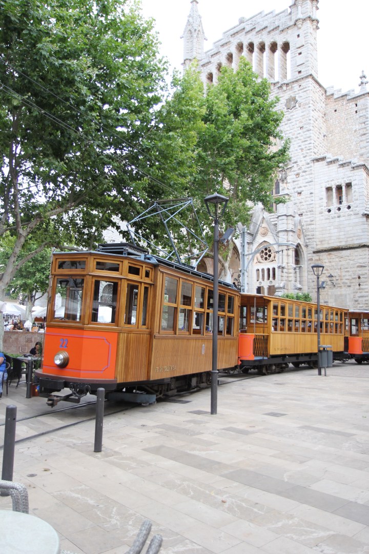 Idag har vi haft en riktig utfärdsdag. Efter frukosten styrde vi hyrbilen mot vår första destination, Sóller. Vi åkte via några små byar varav Bunyola var så vacker och de smala gränderna fångade oss helt. Så anlände vi till Sóller där vi vandrade till Sant Bartomeu-kyrkan. Den har en så vacker fasad och apelsinträden växer så vackert utanför. Sen strosade vi runt en stund, tittade på den gamla spårvagnen och barnen hittade givetvis en leksaksaffär. En pipande brandbil och ett förstoringsglas senare var vi redo att åka vidare.