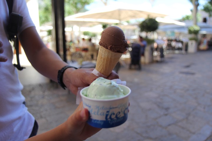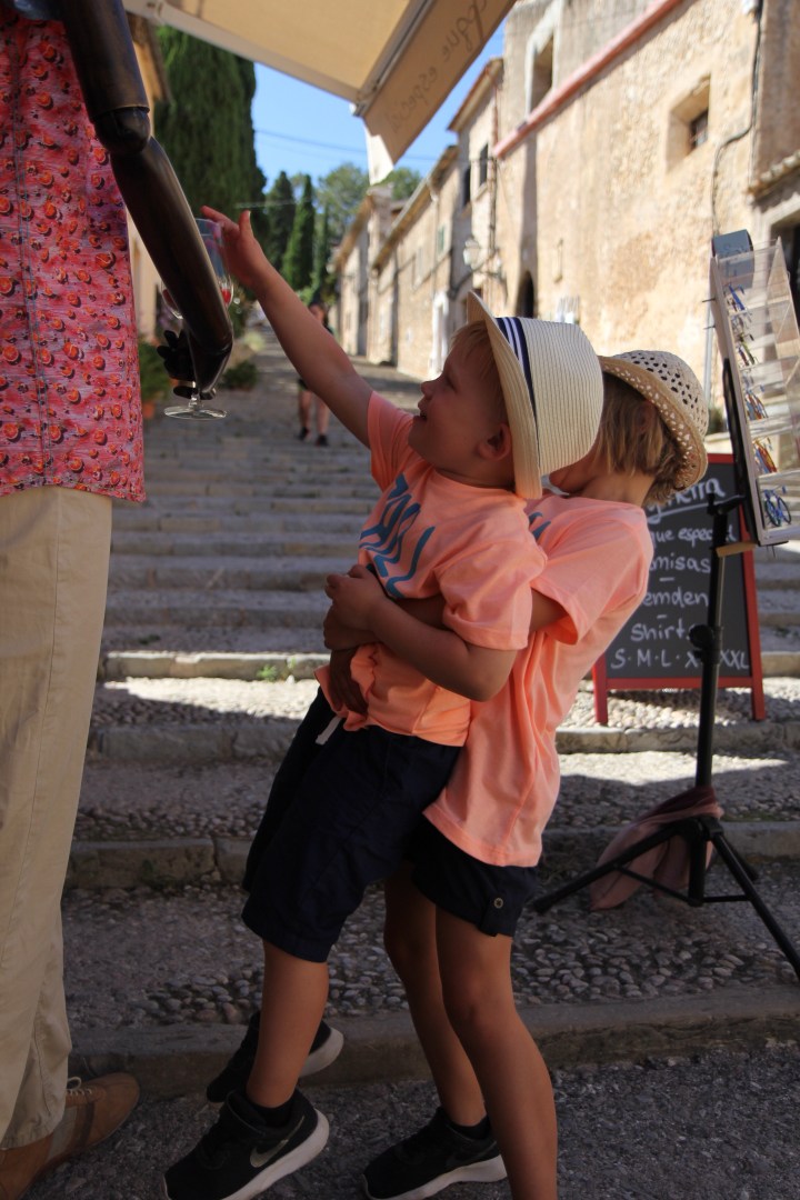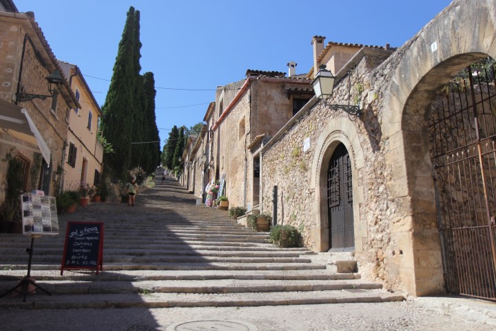 Efter sköna timmar på stranden fram till lunch (Pekka sprang själv efter bilen imorse) och lugna timmen på terrassen kom den dagliga regnskuren. Ibland några droppar. Ibland ungefär tio minuter lång. Och under dagens två första regnminuter beslöt vi oss för att åka till Pollença. Det slutade givetvis regna minut fem i bilen. Helt perfekt och vi kom fram till ett soligt Pollença dryga tjugo minuter senare.
