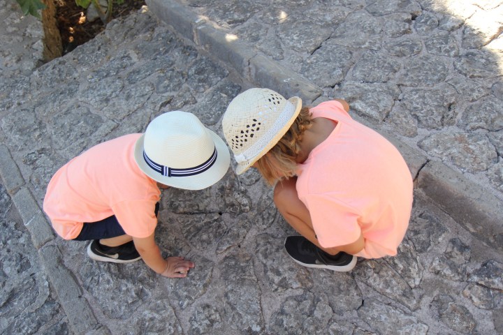 Sen var det ”bara” att ta sig neråt igen. Det var lättare med att locka med glass och kex nere vid torget bara man klarat detta.