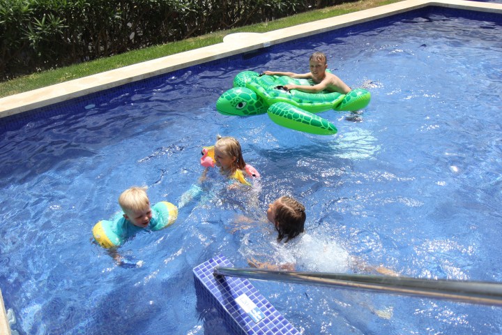 Idag drog vi till med poolparty i vår pool tillsammans med Denice, André och barnen. En mycket skön eftermiddag tillsammans. Barnen var sällsynt trötta idag så de ville(!) skippa(!) minidiscot. Skönt med ett längre avsnitt av Biomysteriet istället. Ett av de bästa resetipsen jag kan ge er är att låna e-böcker från bibban till iPadarna. Dessutom kan man låna nya under resans gång om man stannar en längre tid.