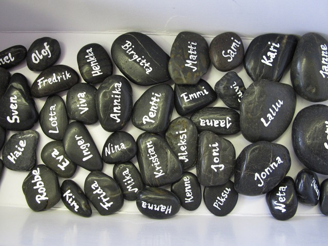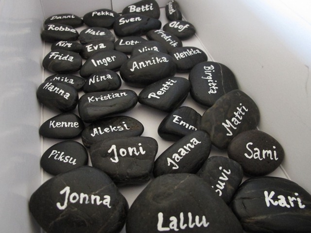 Alltid lika svårt att få ihop bordsplaceringen på bröllop. Det som å andra sidan var solklart var hur placeringskorten skulle se ut. De skulle förstås vara i form av stenar.