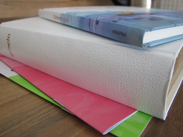 Nu har vi då också papper på att det inte föreligger några lagstadgade hinder för vårt äktenskap. Eftersom vi inte gifter oss i vår hemförsamling fick vi även vår vigselbibel redan idag. Det känns lite lustigt att sitta och titta på den redan nu. Måste nog gömma den i två månader ännu. Skulle vara snyggt att komma till vigseln med några kaffefläckar på den heliga boken.