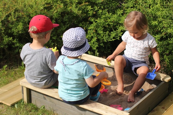 Vår sandlåda lär inte vara någon stor historia, kanske rentav den minsta sandlådan på marknaden. Men den funkar. Ypperligt för tre barn tydligen.