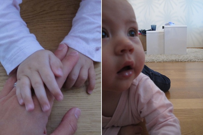 Men till skillnad från igår då hon ännu satt vackert i gungan var hon idag en virvelvind. Hon är sannerligen ingen stillasittare. Allt ska upptäckas.