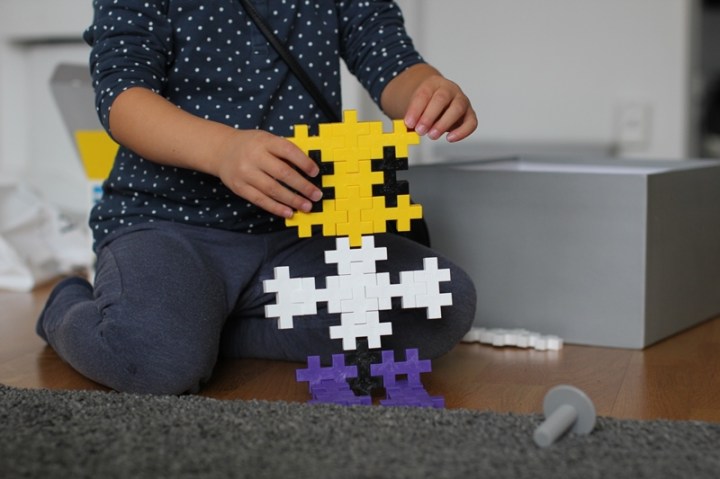 Barnen fick också plus plus – bitar att bygga med. Här har det redan byggts robotar, grävmaskiner och fotbollsmål.
