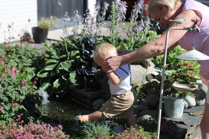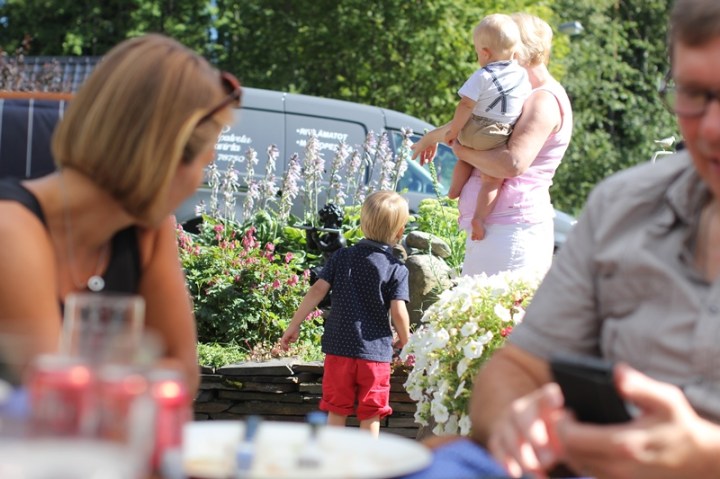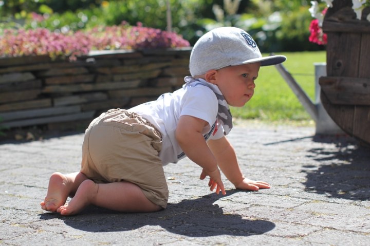 Vi har valt att städa undan nästan allt inredningsskoj för att minska vår egen stress, babyproofat ordentligt alltså. Men så finns ju några saker kvar. Inredningsstegen. Den flyger nog säkert snart. Och den tunga spegeln i tamburen, undrar vilken dag han den där ena sekunden man tittar bort kommer att smälla ner den (trots att den är mycket väl upphängd och fastsatt). Och så har vi ju takkan, med grå stenkant. Gissa om killen har gnagat ett vitt område i den. Och gnaga, det är han bra på alltså. Leksakslådan, sängkanten you name it. Och stenar vet ni att han äter som godis. Ger man honom fingermat, då nuddar det knappt läppen. Här är riskakor och majskrokar undantag. Så ni förstår att man har ögonen på honom hela tiden!