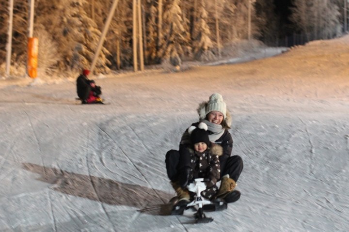 Vi gjorde en liten kvällsutfärd till Hjortlandet för att kolla läget. Det blev några åk med Stigan, koll på backen, stor längtan efter att stå på snowboarden igen och en titt på snökanonerna. Med stora förundrade ögon såg Minea på alla som åkte i backen. Allt detta var ju nytt för henne. Månne det blir snowboard eller slalomskidor för henne nästa vinter?