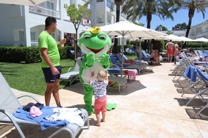 Vi bodde på Prinsotel La Dorada vid Playa de Muro. Hotellet uppfyllde alla våra förväntningar. Minidisco sju kvällar i veckan. En massa pyssel och påhitt för barnen. Till exempel skapade Minea sig en Froggi t-shirt vid pysselstunden en förmiddag. Allt program gick på spanska, engelska och tyska. Vi fick tolka en hel del där, men nu kan barnen några tyska och några spanska barnsånger.