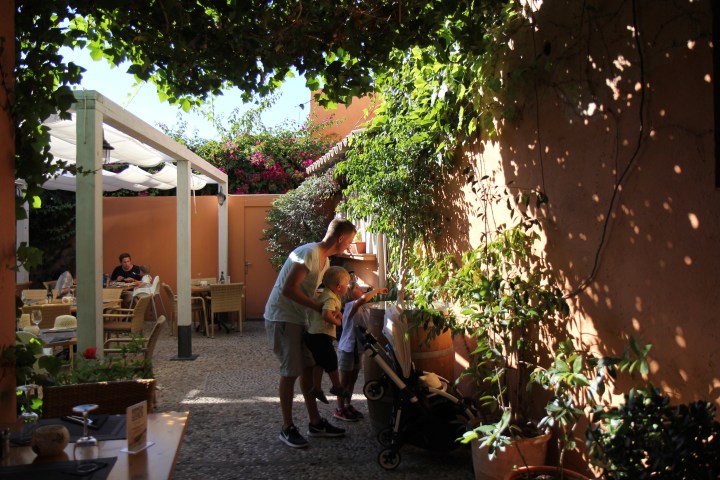 Det blev en långlunch med sand mellan tårna. Barnen umgicks en stor del av tiden under bordet och vi andra njöt av vuxet sällskap. Vilken skillnad till tidigare resor förresten, att kunna njuta av en långlunch utan gnäll. Det är så påtagligt att barnen blir äldre.